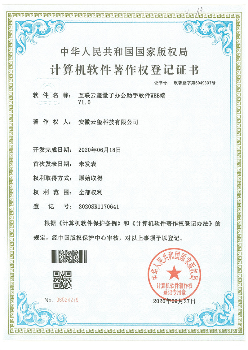 云璽量子是合肥市量子信息產業重點企業,國家信創工委會成員企業,中國信創500強企業。主營業務包括量子安全智能印簽、量子安全智能辦公、量子安全云服務,為政企客戶提供量子安全整體解決方案。